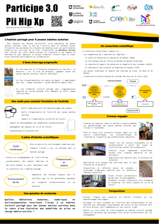 - 05 mai 2022 : Intervention de Patrice Bourdon, coordinateur du programme Participe 3.0 et de la Pii Hip Xp - A Research program to support access to shared inclusive housing for young adults with autism. Dans le cadre de la session New European Bauhaus in Nantes - Making the city (more) sustainable and liveable place.